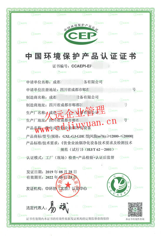 中國環(huán)境保護產(chǎn)品認證證書
